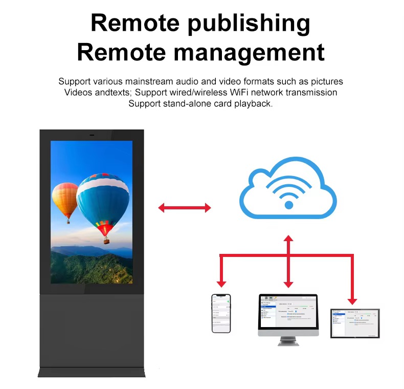 Відкритий кіоск від 43 до 86 дюймів, що стоїть на підлозі, 2500 ніт, 4K Digital Signage